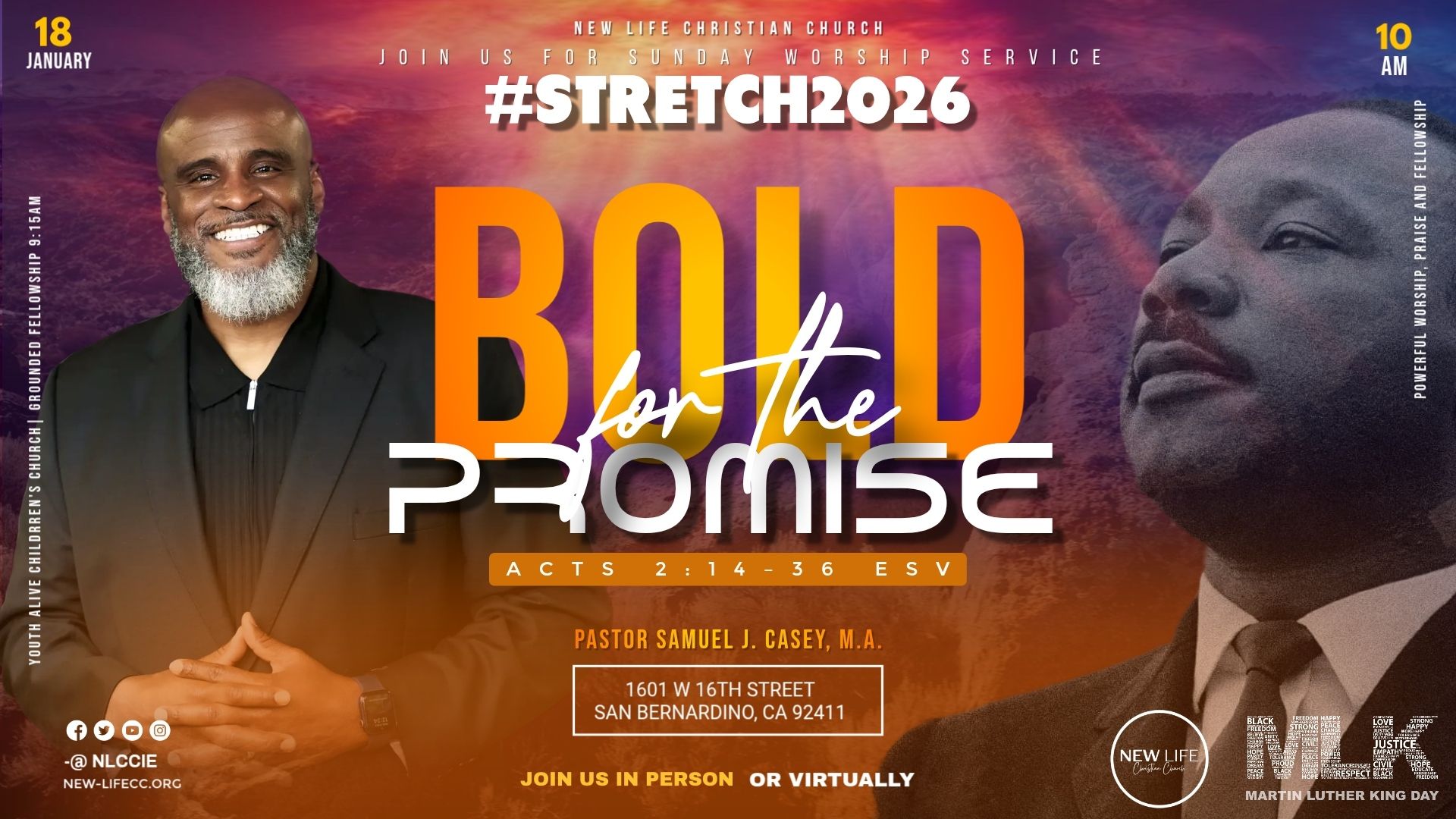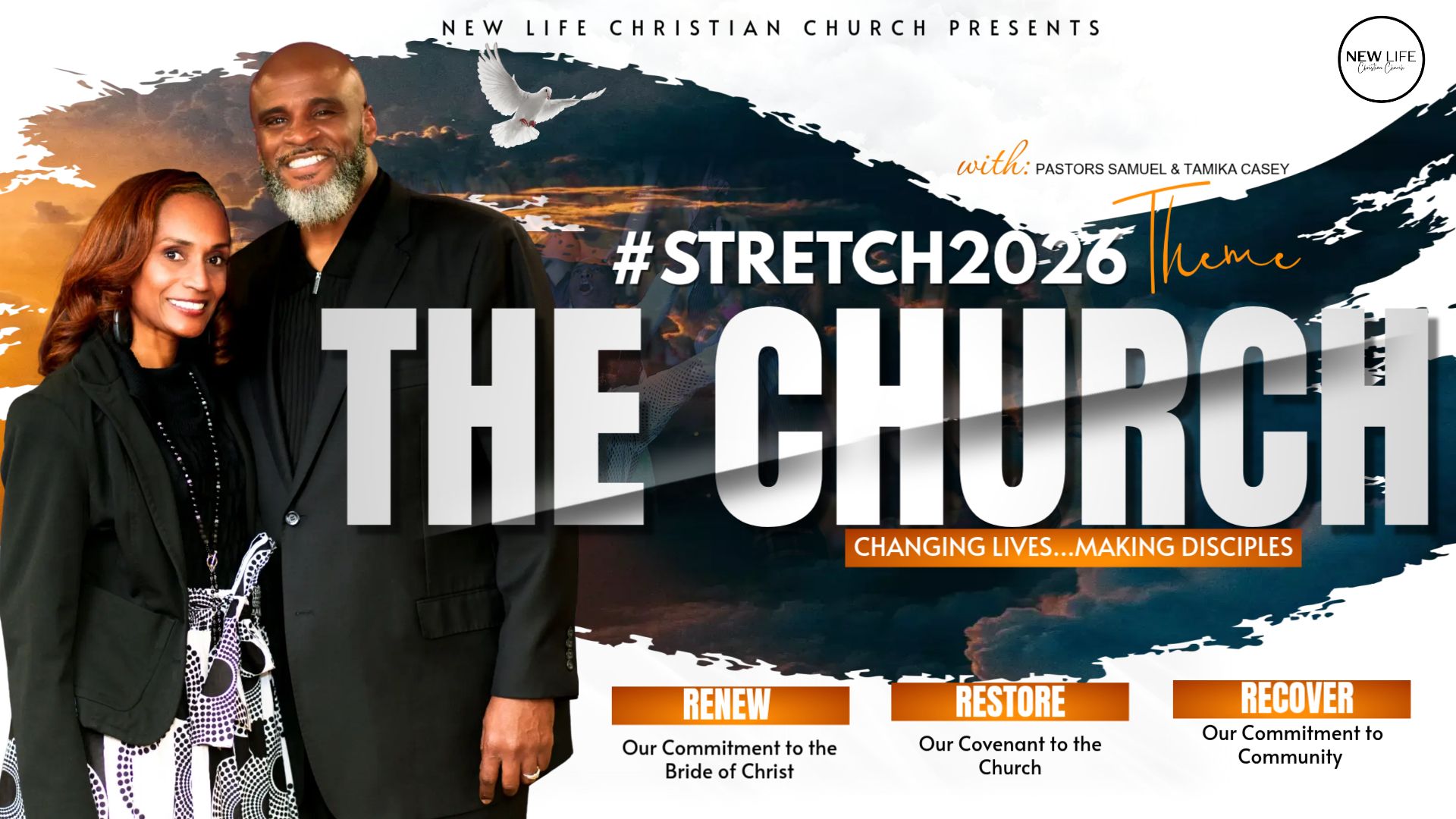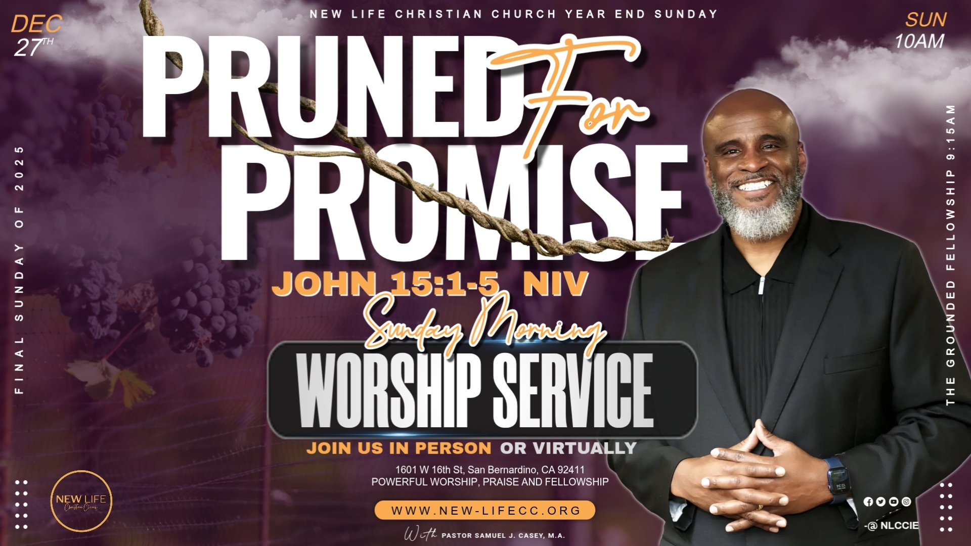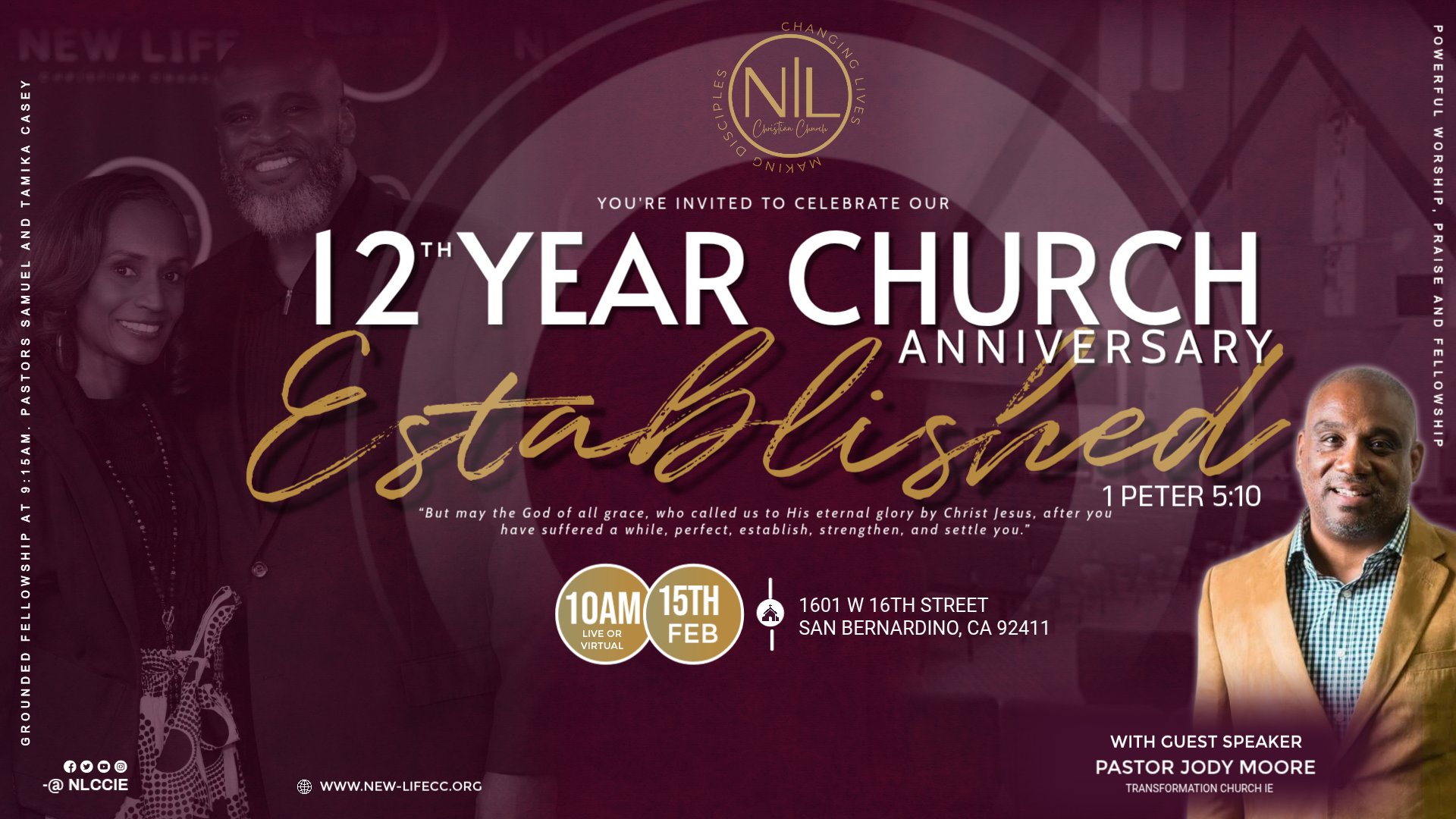 Pastors Samuel J. Casey and Tamika R. Casey are the founding pastors of New Life Christian Church in Fontana, California. The Lord led them to launch this dynamic ministry in October of 2013. Pastor Samuel J. Casey began his ministry in 1993 at Mt. Olive 2nd M.B.C. under the leadership of Pastor E. Winford Bell. Pastor Samuel preached his first sermon on Sunday, November 7, 1993; his first sermon was emblematic of a battle of his life, "You Can Run, But You Can't Hide," from the book of Jonah. He and Tamika were both active members under the covering of Pastor E. Winford Bell. Pastor Samuel J. Casey was licensed at Mt. Olive 2nd M.B.C. in 1994 and ordained in 2002.