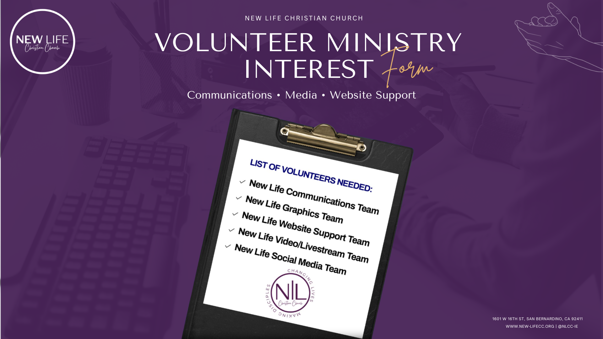 Want to be a part of the New Life CC Community, we have a variety of ministires to meet the needs of our community. Click here to learn more and connect with them.
